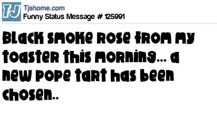 X Black smoke rose from my toaster this morning... a new pope tart has been chosen..