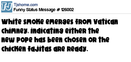 - # 125991 Black smoke rose from my toaster this morning... a new pope tart has been chosen..