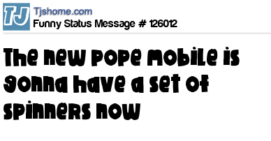 - # 53999 Why does the Pope mobile have bulletproof glass? If the Pope is afraid to die, what chance does anyone else have!