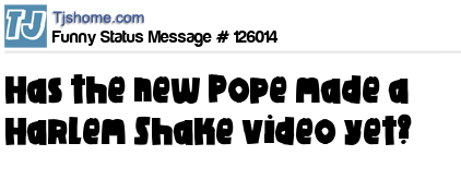 - # 126021 Now would be the best time for the Pope to make a Harlem Shake Video!