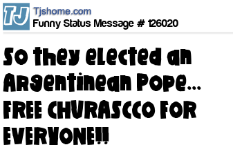 X says So they elected an Argentinean Pope... FREE CHURASCCO FOR EVERYONE!!