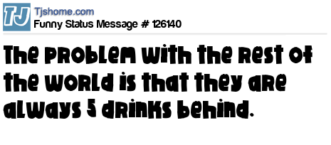 X says The problem with the rest of the world is that they are always 5 drinks behind.