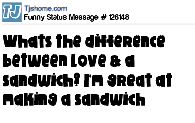 X says whats the difference between love & a sandwich? I'm great at making a sandwich