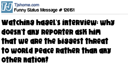 X is Watching hagel's interview: why doesn't any reporter ask him that we are the biggest threat to world peace rather than any other nation?