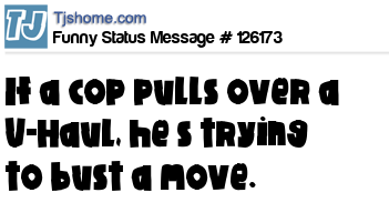 - # 172895 Just saw a cop pull over a UHaul truck. I think he is trying to bust a move.