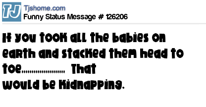 X If you took all the babies on earth and stacked them head to toe,,,,,,,,,,,,,,,,,,,,,, That would be kidnapping.