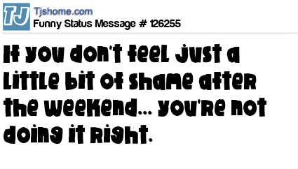 X If you don't feel just a little bit of shame after the weekend... you're not doing it right.