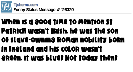 X When is a good time to mention St Patrick wasn't Irish, he was the son of slave-owning Roman nobility born in England and his color wasn't green, it was blue? Not today then?
