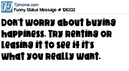 X says Don't worry about buying happiness. Try renting or leasing it to see if it's what you really want.