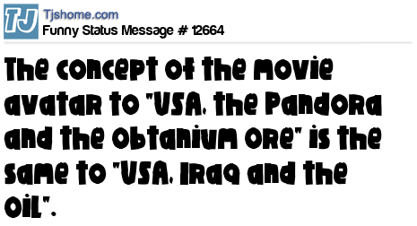 X the concept of the movie avatar to "USA, the Pandora and the Obtanium Ore" is the same to "USA, Iraq and the Oil".
