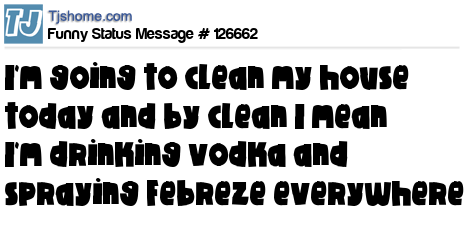 X says I'm going to clean my house today and by clean I mean I'm drinking vodka and spraying Febreze everywhere.