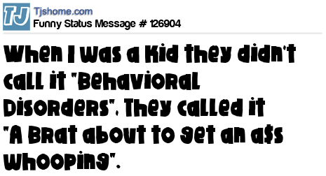 X When I was a kid they didn't call it "Behavioral Disorders", They called it "A Brat about to get an a$s whooping".