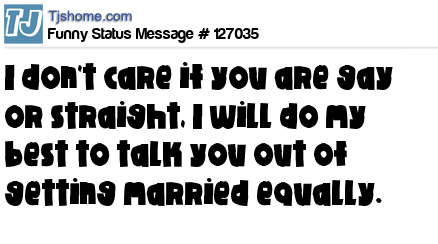 X says I don't care if you are gay or straight, I will do my best to talk you out of getting married equally.