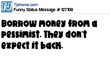- # 173694 Always borrow money from pessimists -- they don't expect it back. ~ Steven Wright