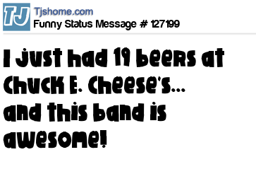 - # 98665 I just had 14 beers at Chuck E. Cheese's... and this band is f*cking awesome!