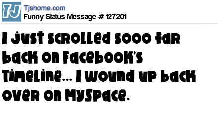- # 96851 I just scrolled so far back on Facebook's Timeline... I wound up back over on MySpace. :(