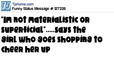 X "Im not materialistic or superficial".....says the girl who goes shopping to cheer her up