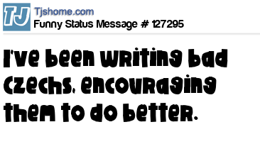 - # 120697 "I'm still writing 2012 on all my Czechs." -Guy who likes writing on people from Central Europe
