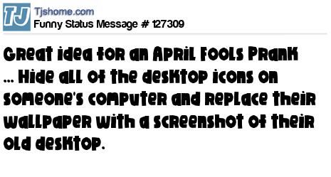 X says great idea for an April Fools Prank ... Hide all of the desktop icons on someone's computer and replace their wallpaper with a screenshot of their old desktop.