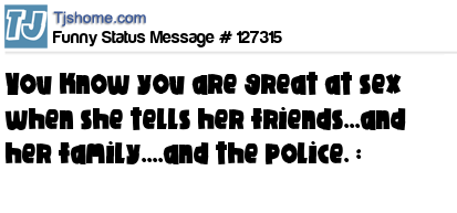 X is you know you are great at sex when she tells her friends...and her family....and the police. :|