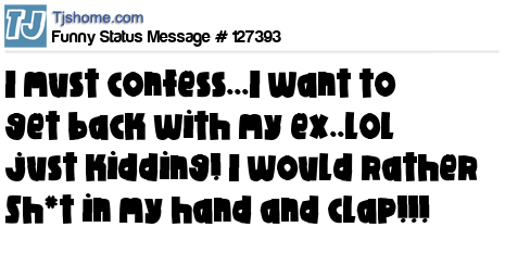- # 97491 I have a confession to make... "I want to get back with my ex"...LOL Just Kidding..."I'd rather sh!t in my hands and clap !"..