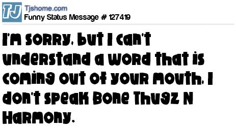 X says I'm sorry, but I can't understand a word that is coming out of your mouth, I don't speak Bone Thugz N Harmony.