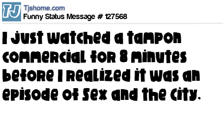 X says I just watched a tampon commercial for 8 minutes before I realized it was an episode of Sex and the City.