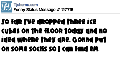 X says So far I've dropped three ice cubes on the floor today and no idea where they are. Gonna put on some socks so I can find em,