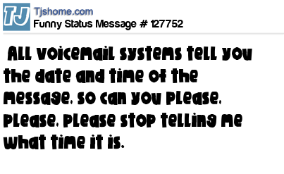 X says All voicemail systems tell you the date and time of the message, so can you please, please, please stop telling me what time it is.