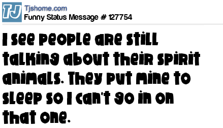 X says I see people are still talking about their spirit animals. They put mine to sleep so I can't go in on that one.