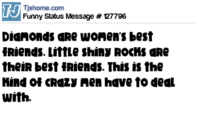 X says Diamonds are women's best friends. Little shiny rocks are their best friends. This is the kind of crazy men have to deal with.