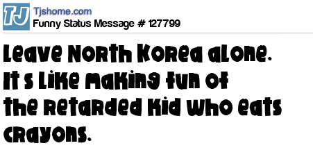 X says Leave North Korea alone. It’s like making fun of the retarded kid who eats crayons.