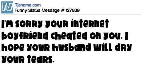X says I'm sorry your internet boyfriend cheated on you. I hope your husband will dry your tears.