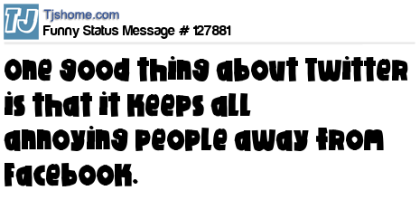 X says One good thing about Twitter is that it keeps all annoying people away from Facebook.