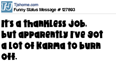 X It's a thankless job, but apparently I've got a lot of Karma to burn off.