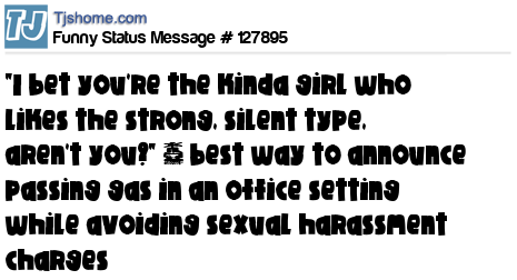 X "I bet you're the kinda girl who likes the strong, silent type, aren't you?" ~ best way to announce passing gas in an office setting while avoiding sexual harassment charges ツ