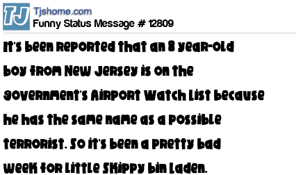 X It's been reported that an 8 year-old boy from New Jersey is on the government's Airport Watch List because he has the same name as a possible terrorist. So it's been a pretty bad week for little Skippy bin Laden.