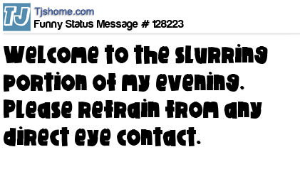 X says Welcome to the slurring portion of my evening. Please refrain from any direct eye contact.