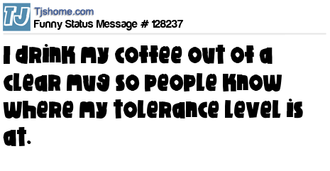 X says I drink my coffee out of a clear mug so people know where my tolerance level is at.