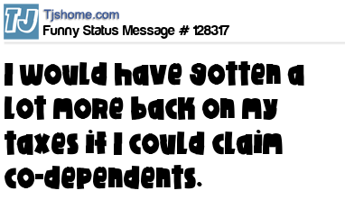 X I would have gotten a lot more back on my taxes if I could claim co-dependents.