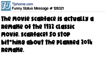 X says The movie scarface is actually a remake of the 1932 classic movie, scarface! So stop bit*hing about the planned 2014 remake.