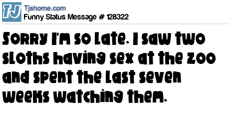 X says Sorry I'm so late. I saw two sloths having sex at the zoo and spent the last seven weeks watching them.