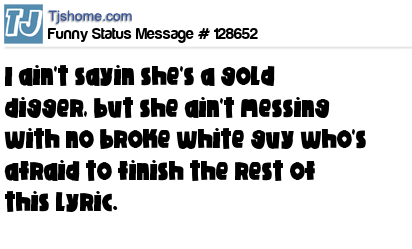 X says I ain't sayin she's a gold digger, but she ain't messing with no broke white guy who's afraid to finish the rest of this lyric.