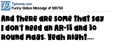 X says And there are some that say I don't need an AR-15 and 30 round mags. Yeah right....
