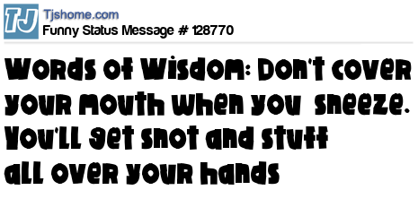 X Words of Wisdom: Don't cover your mouth when you sneeze. You'll get snot and stuff all over your hands ツ