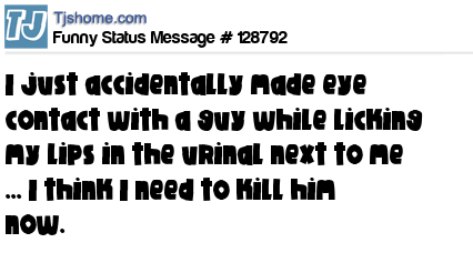 X I just accidentally made eye contact with a guy while licking my lips in the urinal next to me ... I think I need to kill him now.