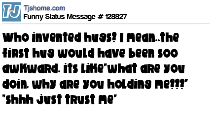 - # 47222 Who came up with hugs? The very first hug must have been really creepy. “What are you doing? Why are you holding me?” “Just trust me.”