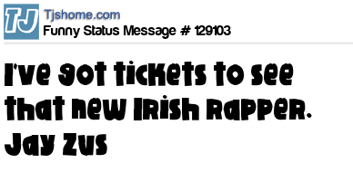 X  I've got tickets to see that new Irish rapper. Jay Zus