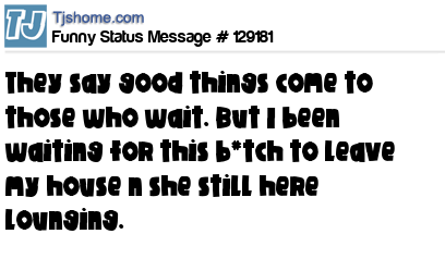 X says They say good things come to those who wait. But I been waiting for this b*tch to leave my house n she still here lounging.