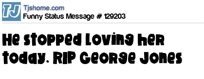 - # 129210 Are we sure about this George Jones news? He may just be playing possum.